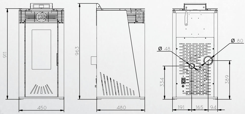 Diamètre pour la sortie des fumées : Ø 80 mm